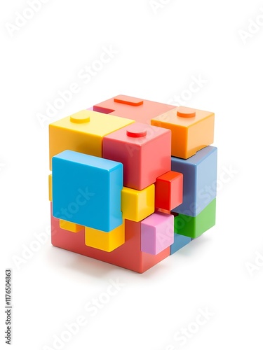 Obraz premium Colorful 3D Puzzle Cube with Interlocking Blocks. AI Generated