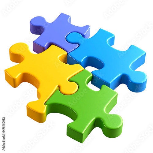© Haeder, Obraz premium Colorful 3D Puzzle Pieces Interlocking Teamwork, Collaboration, and Solution Concept