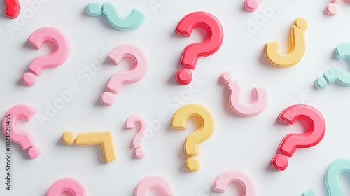 Naklejka premium Colorful 3D Question Marks Scattered on a White Background