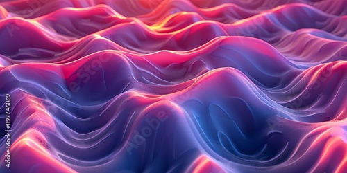 Obraz premium Colorful 3D rendering of a wavy surface with pink and blue gradient lighting,...