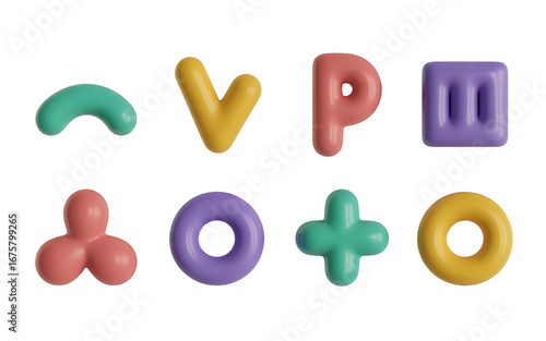 © Arafat, Naklejka premium Colorful 3d shapes isolated on white isolated on transparent background