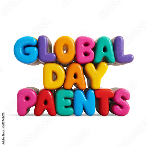 Fototapeta premium Colorful 3D Text for Global Day of Parents on a Transparent Background