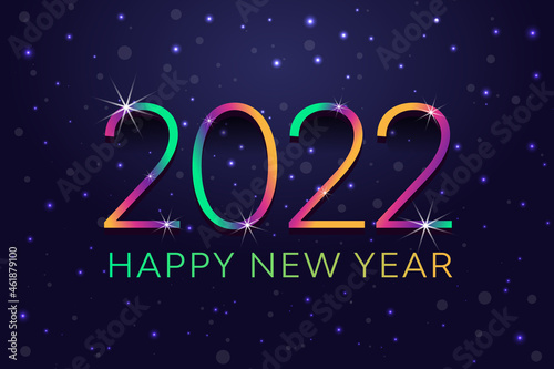 Fototapeta premium Colorful Dark Blue Night Sky Blinking Stars with Falling Snows Reveals Happy New Year 2022 Abstract