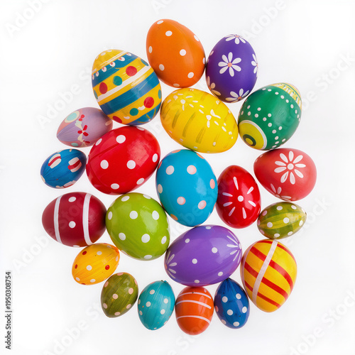 Obraz premium Colorful decorated Easter eggs arranged on white background