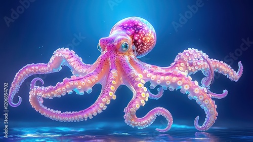 Fototapeta premium Colorful Deep-Sea Beauty: Artistic Octopus Among Vibrant Corals