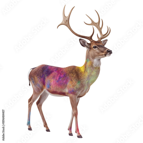 © olegganko, Fototapeta premium Colorful Deer Standing in a Plain Setting With Bright Colors on Its Body During Daylight Hours