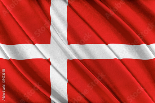 © Denis Rozhnovsky, Fototapeta premium Colorful Denmark flag waving in the wind. 3D illustration.