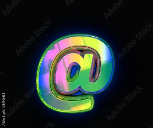 Obraz premium Colorful dichroic font - at sign isolated on grey background, 3D illustration...