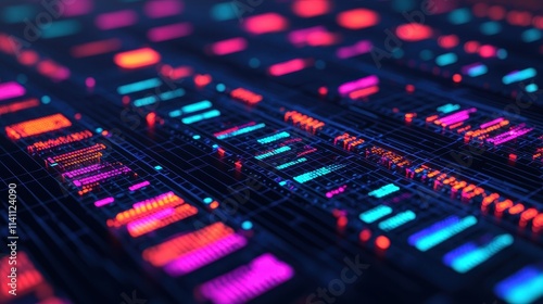 Obraz premium Colorful Digital Data Visualization with Neon Elements and Patterns