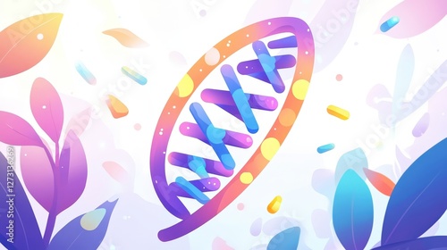 Naklejka premium Colorful DNA Strand Surrounded by Floral Elements