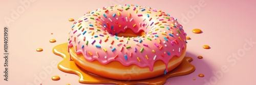 Fototapeta premium Colorful donut drizzled with icing and sprinkles, set on a playful pink...