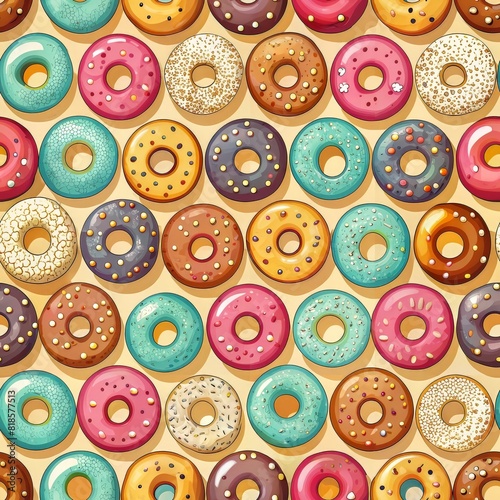 © Yasmeen, Fototapeta premium Colorful donut in seamless pattern
