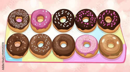 Fototapeta premium Colorful Donuts with Various Toppings Displayed