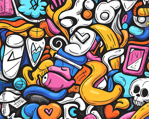 © tari, Obraz premium Colorful Doodle Art Background.