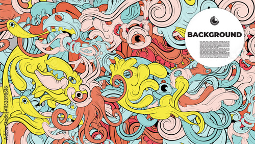 Fototapeta premium Colorful doodle art with various elements. it is suitable for background, book cover, cover, template, flayer, summer project. it is also useful for coloring book project.