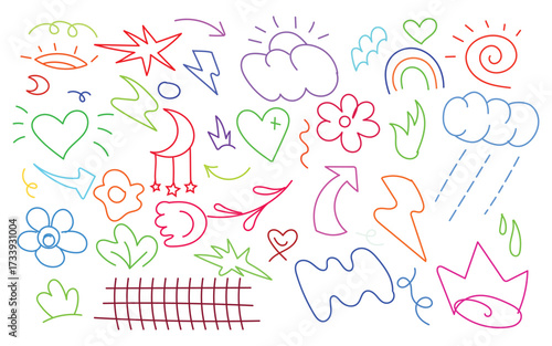 © shammi, Fototapeta premium Colorful doodle elements on white background design