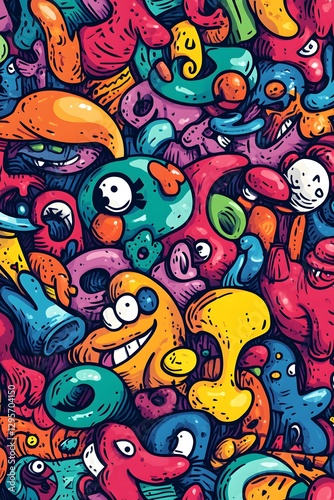 © anak, Fototapeta premium Colorful Doodle Monster Pattern