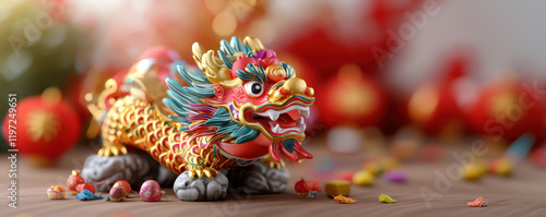 Fototapeta premium colorful dragon figurine symbolizes prosperity during celebrations