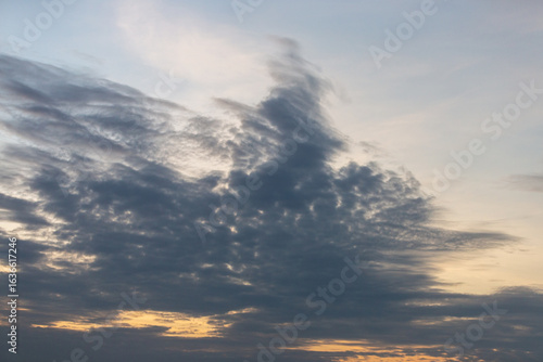 © wannasak, Obraz premium Colorful, dramatic clouds fill the evening sky, illuminated by the beautiful light of the setting sun