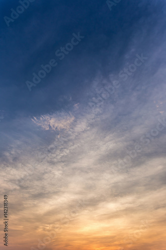 Naklejka premium Colorful dramatic sky with cloud at sunset.Sky with sun background.