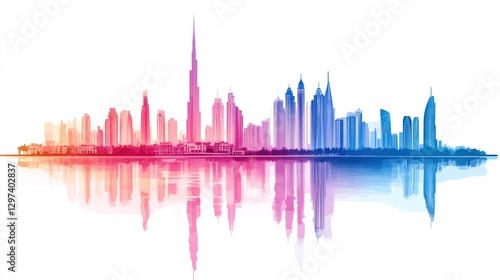 © lestari, Naklejka premium Colorful Dubai Skyline Reflection