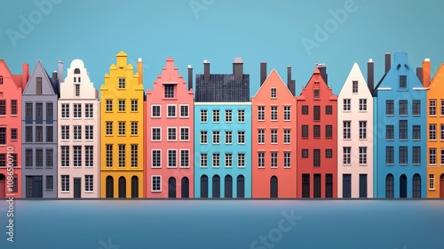 © Narongsag, Fototapeta premium Colorful Dutch Waterfront Houses Architecture Illustration 3D Render Cityscape