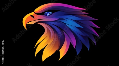 Fototapeta premium Colorful eagle head, vibrant gradient, diamond eye