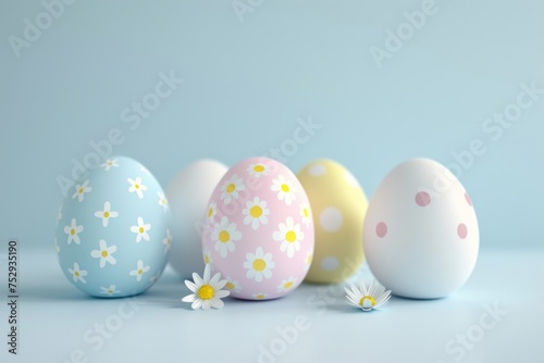 © Leo Rohmann, Fototapeta premium Colorful Easter Egg Basket Religious artwork. Happy easter resurrection celebration bunny. 3d easter bonnet hare rabbit illustration. Cute easter love festive card arrangement copy space wallpaper