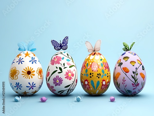 Fototapeta premium Colorful easter egg decorations spring celebration digital art festive...