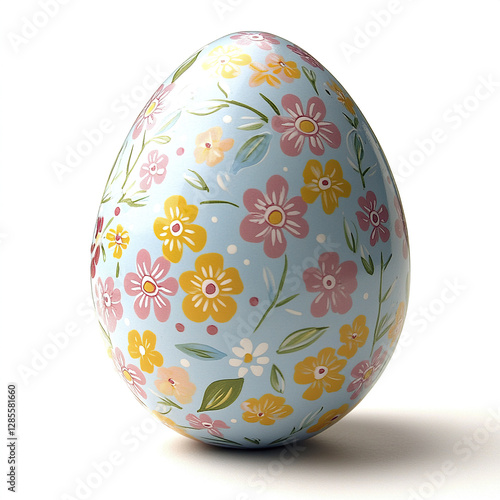 Fototapeta premium Colorful Easter egg with floral pattern on white background