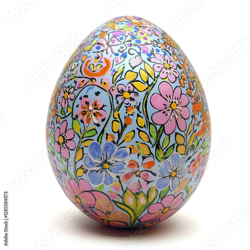 Fototapeta premium Colorful Easter egg with floral patterns on white background