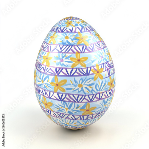 © Thanthara, Fototapeta premium Colorful Easter egg with floral patterns on white background
