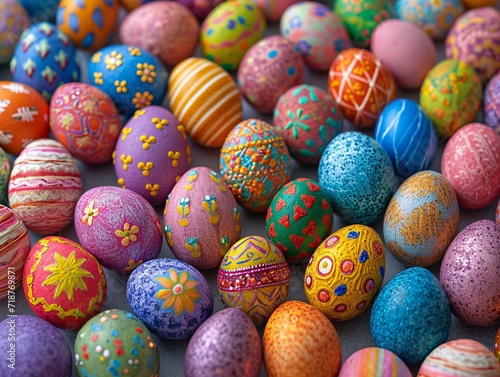 © Bipul Kumar, Obraz premium Colorful Easter Eggs: A Rainbow of Festive Fun Generative AI