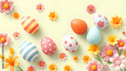 Fototapeta premium Colorful Easter eggs and flowers in a festive spring setting