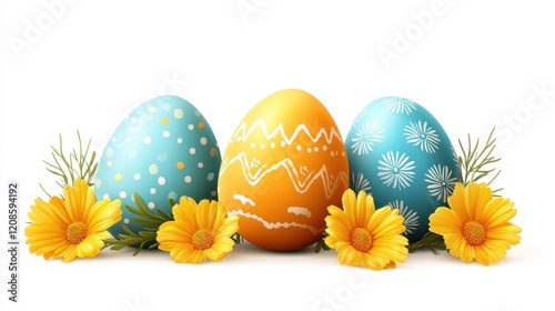 Fototapeta premium Colorful easter eggs and spring flowers for festive celebrations