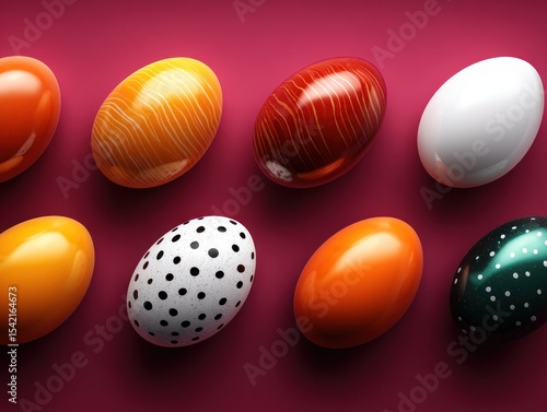 Fototapeta premium Colorful Easter eggs arranged on a vibrant pink background