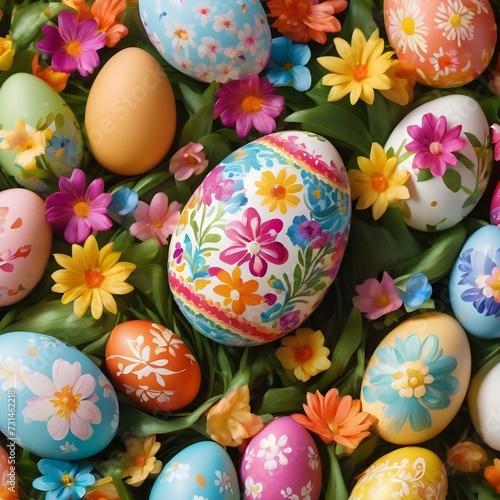 © QasimAli, Fototapeta premium Colorful easter eggs background,Happy Easter Concept: Cheerful Background with Colorful Eggs,Festive Springtime: Colorful Eggs Pattern for Easter