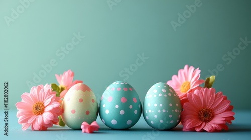Fototapeta premium Colorful Easter eggs decorated with flowers on a pastel background