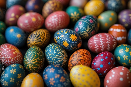 Obraz premium Colorful easter eggs hand-painted and displayed for spring celebration