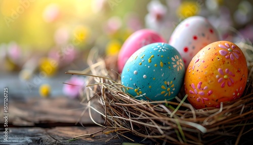 Obraz premium Colorful Easter Eggs in a Nest