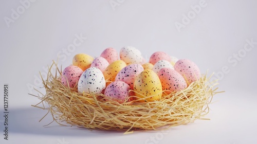 Fototapeta premium Colorful Easter Eggs in Nest with Straw for Spring Celebrations