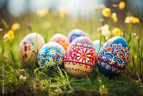 Fototapeta premium Colorful Easter Eggs in outdoor settings