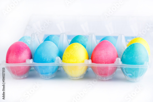 © garry_images, Obraz premium Colorful easter eggs in package isolated.