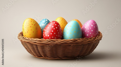 © Hvkk, Naklejka premium colorful easter eggs in wicker basket isolated on transparent background