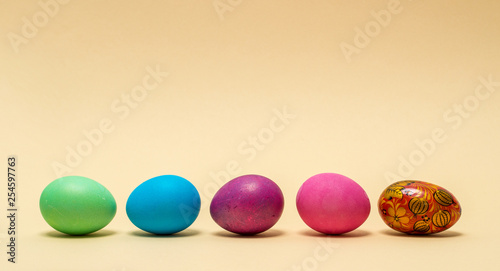 © Anton, Obraz premium Colorful easter eggs isolated on beige background