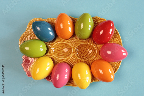 © Andreas Berheide, Fototapeta premium Colorful Easter eggs on a blue background