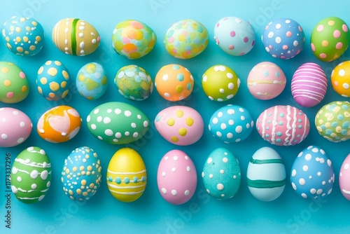 © Molang Visual, Obraz premium Colorful Easter Eggs on a Light Blue Background