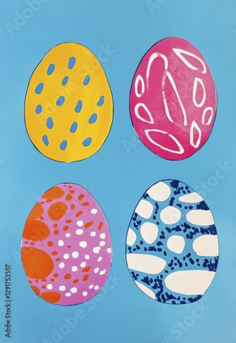 Fototapeta premium Colorful easter eggs on blue background with abstract patterns