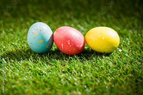 Fototapeta premium Colorful Easter eggs on grass in garden