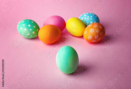 Obraz premium Colorful Easter eggs on pink background